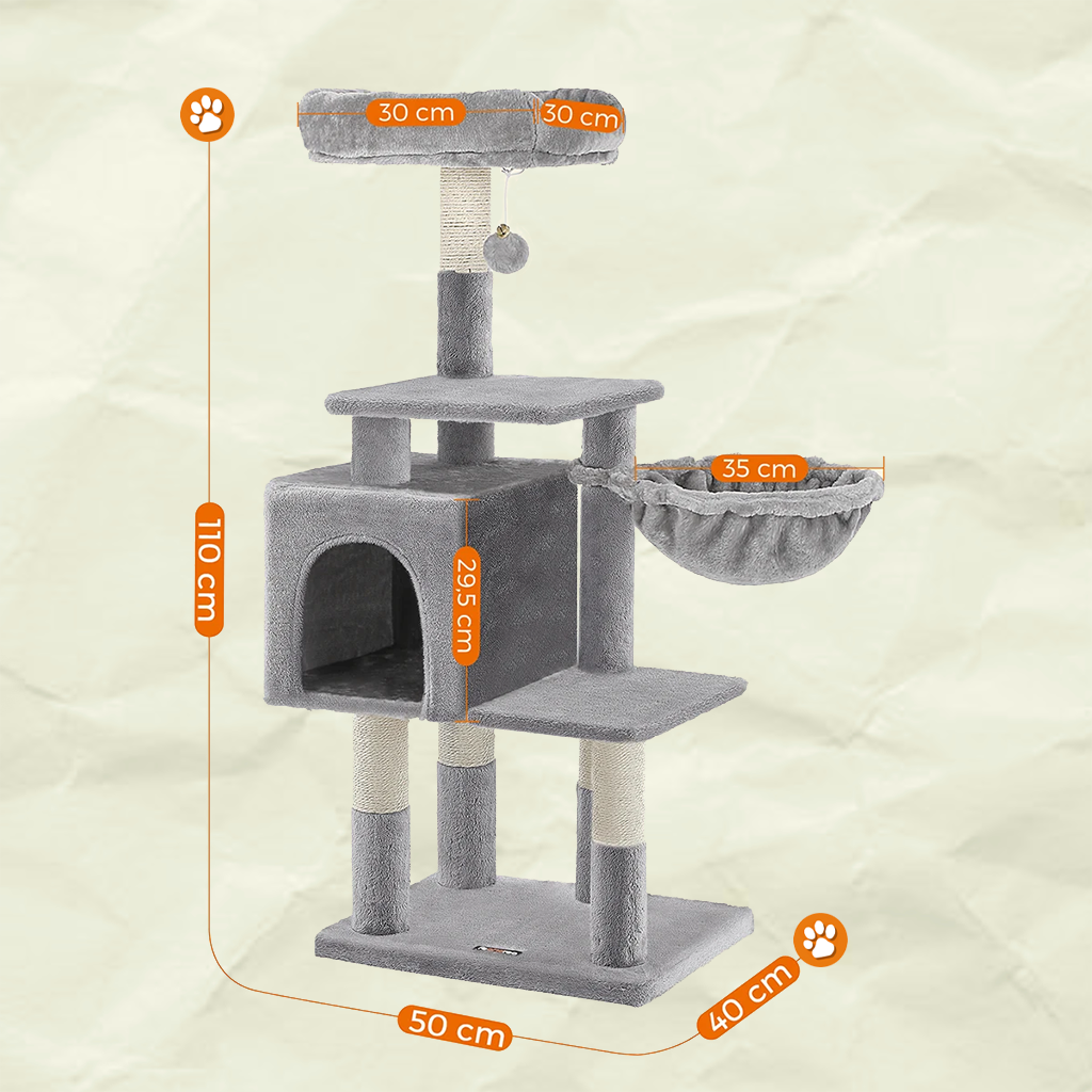 Idéal pour les petits explorateurs pleins d’énergie, les chats casaniers qui adorent observer depuis leur perchoir, ou encore les vieux matous qui méritent confort et sécurité. Que ce soit pour jouer, se reposer ou protéger vos meubles, cet arbre à chat devient vite son endroit préféré… et le vôtre aussi !