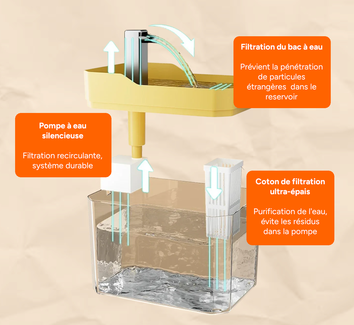 Profitez d’une filtration multi-niveaux qui élimine impuretés et odeurs pour une eau claire et savoureuse, réduisant les risques de maladies urinaires.